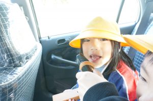 消防車に子供たちを乗せてくれ、駐車場を一周してくれました。普段乗ることができない消防車に乗れ子どもたちはとても喜んでいました。