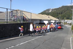 秋の火災予防週間で、『香春町消防団』の皆様と一緒に『らいおん組、ぞう組さん』が【防火パレード】を行いました。