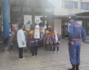 『らいおん組、ぞう組さん』が「火の用心・マッチ一本火事のもと・子供は火遊びしません」とみんなで声を出しながら保育所から香春町役場まで『防火パレード』に行ってきました。