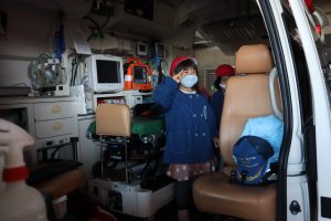 続いて消防署にある車の説明をしていただき、救急車の中にも乗せて頂きました。