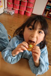 おやつは給食の先生手作りの『鬼のカップケーキ』でした。