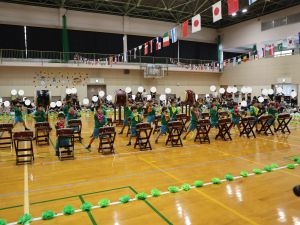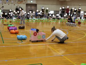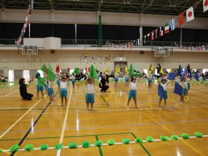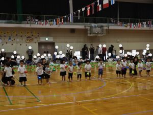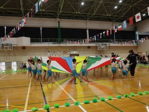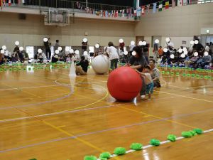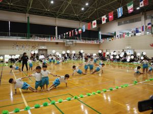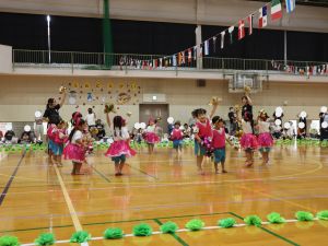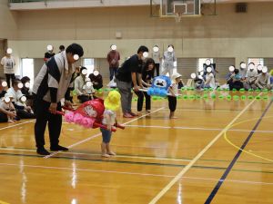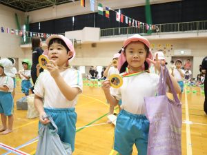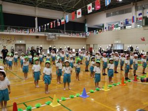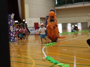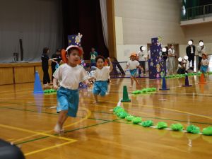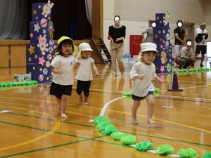 保育所として大きな行事でもある『運動会』。子どもたちはこの日の為に暑い中でも練習を1か月間頑張ってきました。開場時間が8時25分にもかかわらず、早朝より順番待ちをされている保護者の方がたくさんいました。会場の設置準備を保護者会役員さんに協力をしていただき、予定通り8時50分からクラスごとの入場行進で『運動会』が始まりました。小さなお友だちは保護者と一緒に入場行進を行い、そのあとはプログラムの通り競技や遊戯をお楽しみ最後は年長ぞう組さんによる『組体操・パラバルーン』を披露しました。閉会式では頑張った子どもたちに保護者会よりメダルとご褒美のプレゼントを子どもたち一人一人に渡して運動会を終えました。