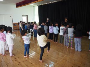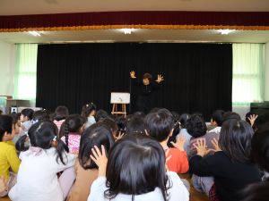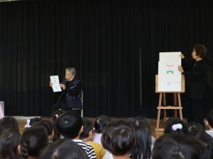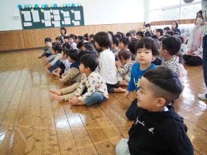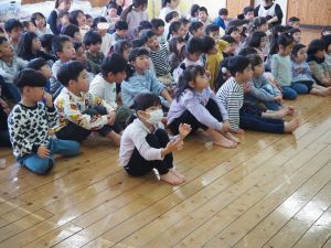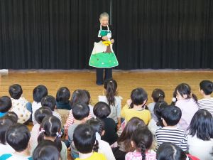 嘉麻市で『絵本の読み聞かせ』で活躍されている『マイフレンド』の2名が保育所で『お話し会』を開催してくれました。『遊戯室』に『うさぎ、くま、らいおん、ぞう組さん』が集まり、ご挨拶を行い絵本の読み聞かせからスタートしました。座って聞くだけでなく子どもたちの集中力が続くよう手振り身振りを交えたお話もあり、あっという間の1時間でした。最後に年長ぞう組さんがお礼に手話歌を披露して楽しい『お話し会』を終わりました。