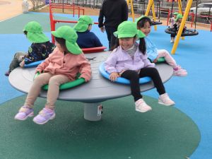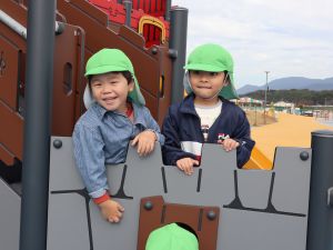 『らいおん組さん』が園バスに乗って大任道の駅にできた新しい公園に行ってきました。元気な『らいおん組さん』は乗り物や遊具が大好き!給食の時間に間に合うまでたくさん遊んできました。