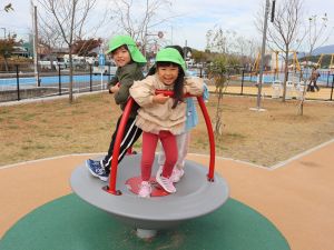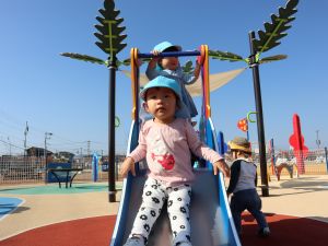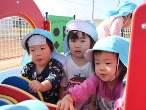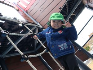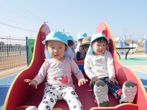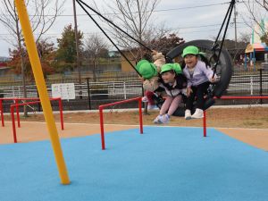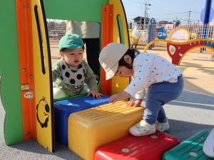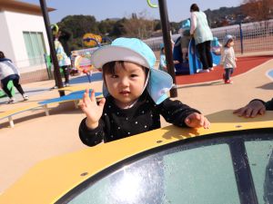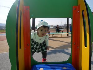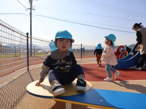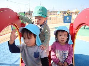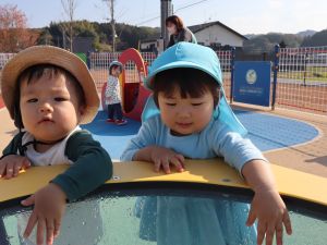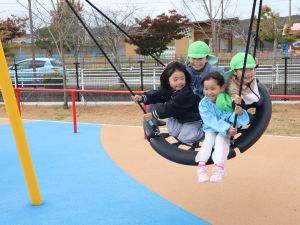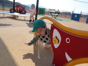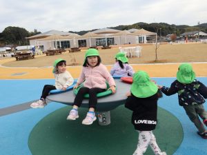 お天気がいい日にはお出かけがしたい保育所の子どもたち。大任道の駅の公園は保育所からも近く、小さな子供でも安心して遊ぶスペースがあります。たまご組のお友だちが行く予定にしていましたがひよこ組さんも一緒に行きたいとのリクエストがありいっしょに遊んできました。